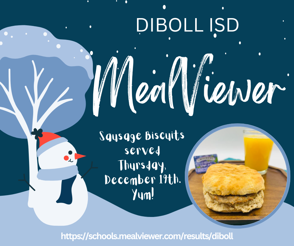 Visit https://schools.mealviewer.com/results/diboll to see your school's menus today! You can also download MealViewer in the app store for free.